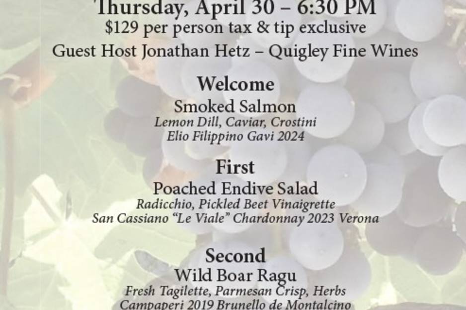 Read MoreThe Coast Guard House is hosting an unforgettable dinner to explore the food and wine of the northern, and Tuscan region of Italy.